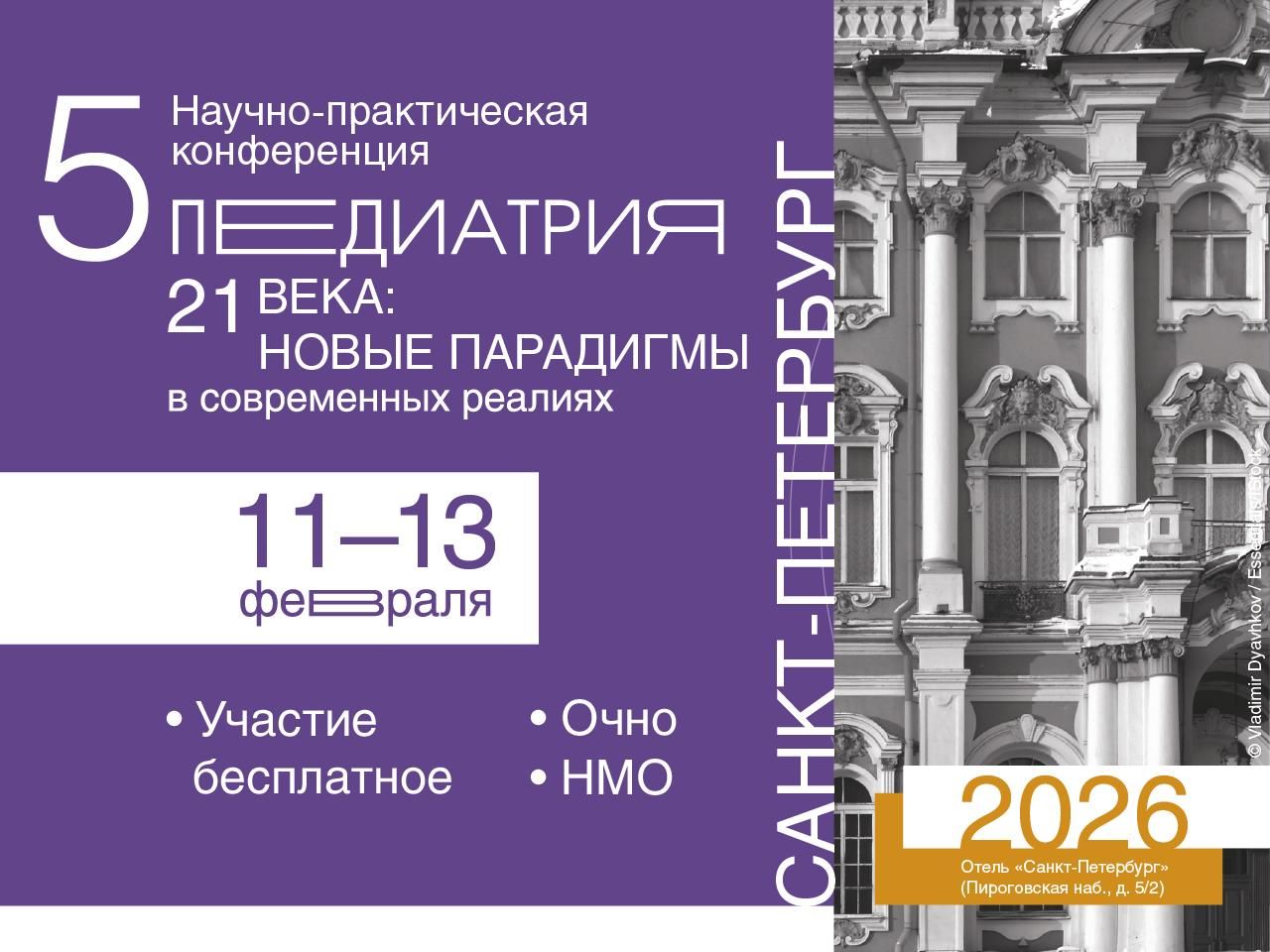 👋 Оргкомитет StatusPraesens приглашает вас на 5-ю Научно-практическую конференцию «Педиатрия 21 века: новые парадигмы в современных реалиях», которая пройдёт 11–13 февраля в Санкт-Петербурге!